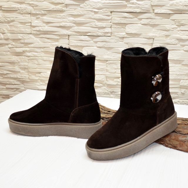 Уггі стильні замшеві на товстій підошві, декоровані гудзиками