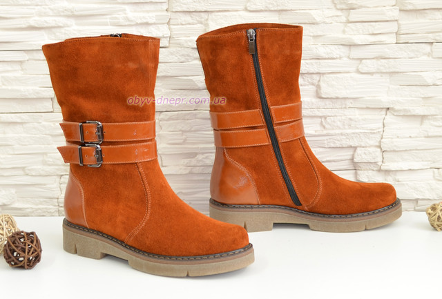 Замшеві черевики руді жіночі на товстій підошві