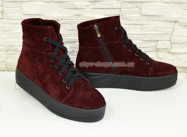 Жіночі замшеві бордові черевики на шнурівці ― незамінні на кожен день, дуже зручні і ніжки в них комфортно. Розраховані на стандартну повноту ноги, а також підійдуть на ніжку з підйомом ― завдяки шнурівці регулюється повнота. Виконані з натуральної замші бордового кольору.