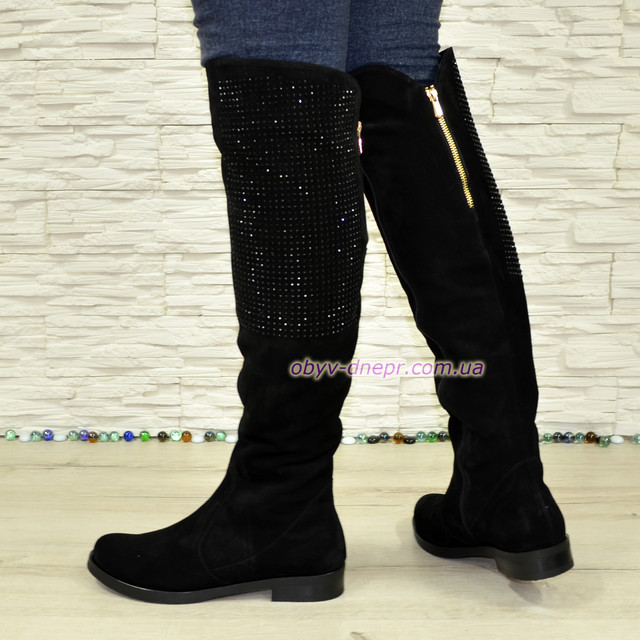 Ботфорти жіночі чорні замшеві на низькому ходу