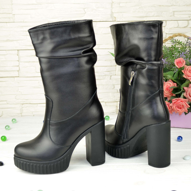 Черевики жіночі, виконані з натуральної шкіри чорного кольору. Ідеальна посадка на будь-яку ногу. Модель дуже зручна, незважаючи на високий каблук, стильні і красиві. Блискавка до середини. Розраховані на стандартну повноту ноги.