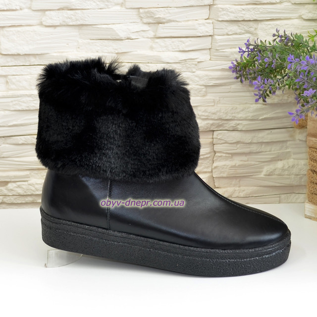 Черевики чорні жіночі шкіряні на товстій підошві, декоровані хутром
