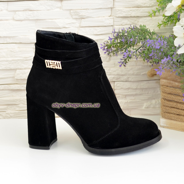 Черевики жіночі замшеві на стійкому каблуці, колір чорний