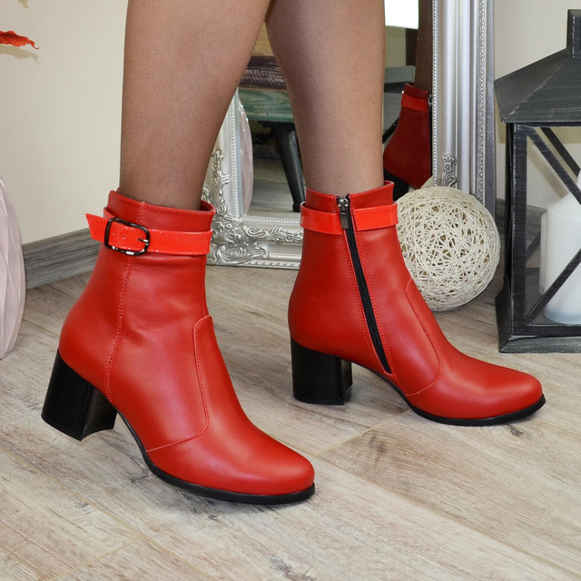 Черевики жіночі на каблуці ― виконані з натуральної шкіри, декоровані лаковим ремінцем і фурнітурою. Класичний пошиття завжди в моді. Підошва блок. Розраховані на стандартну повноту ноги. Виготовлені з натуральної шкіри і лаку червоного кольору.