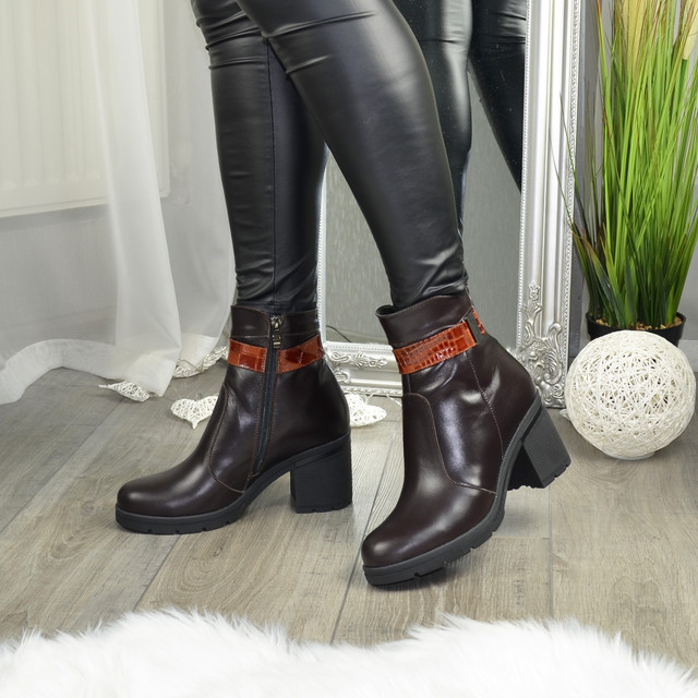 Чоботи жіночі шкіряні на стійкому каблуці, колір коричневий