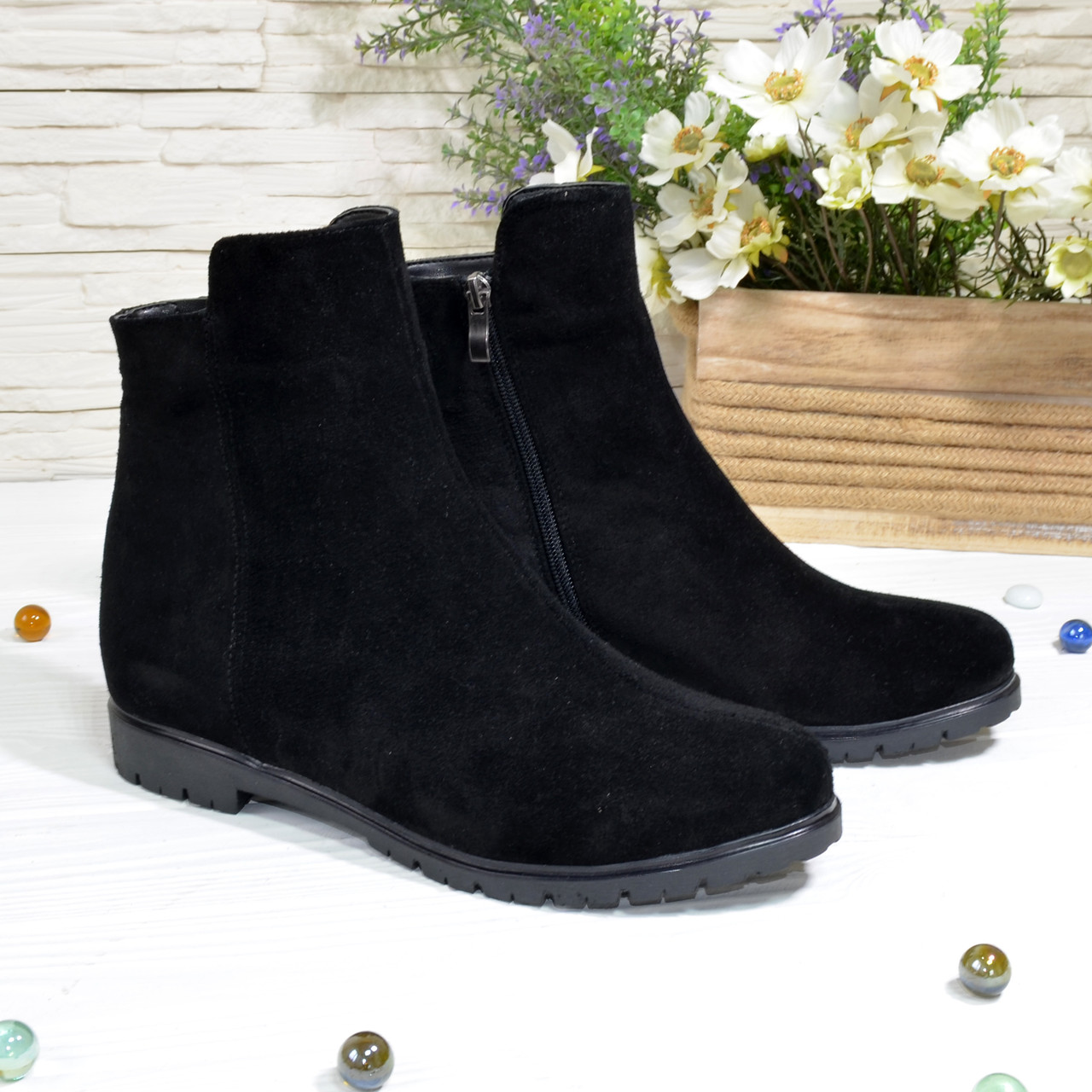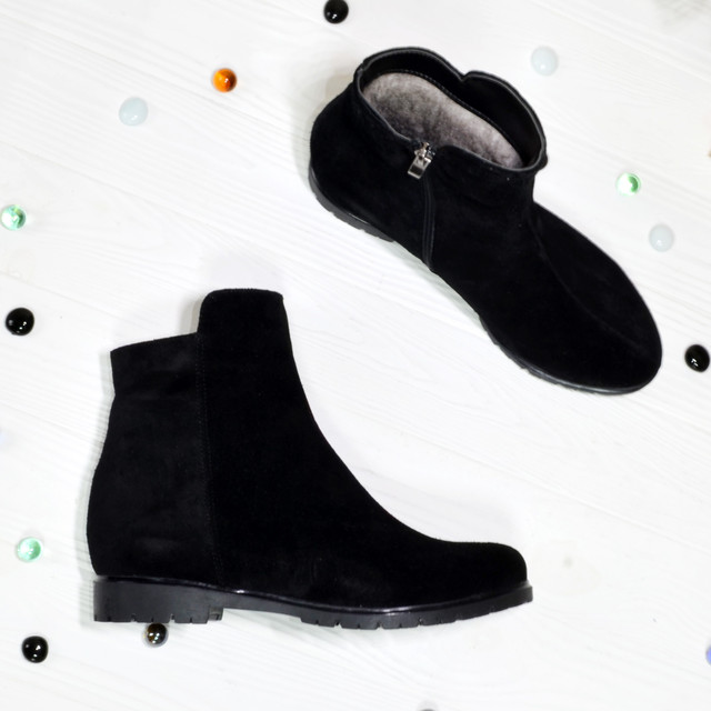 Жіночі замшеві черевики на низькій підошві ― зручні, комфортні, підійдуть на середню повноту ноги. Відмінно підійдуть на кожен день! Виготовлені з натуральної замші чорного кольору.