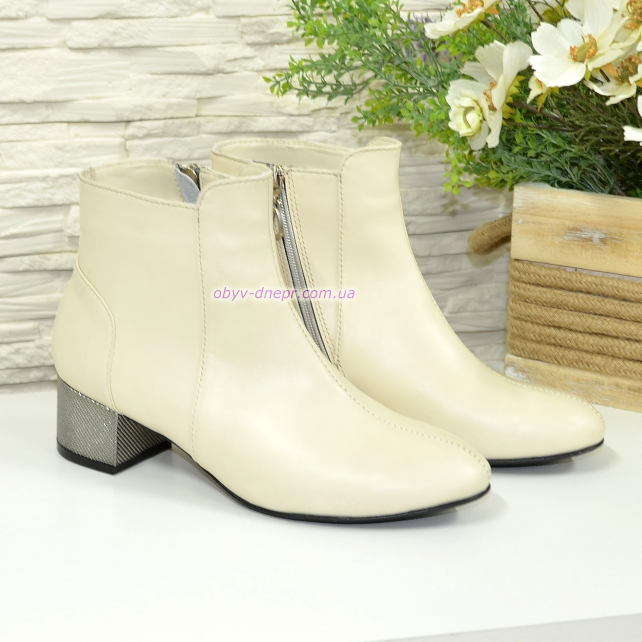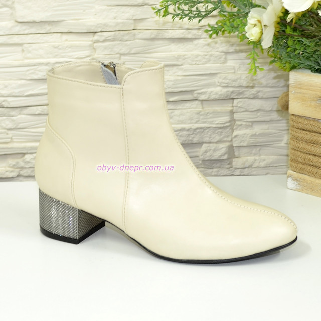 Жіночі черевики на маленькому підборах. Виконані з натуральної шкіри бежевого кольору. Розраховані на вузьку і середню повноту ноги .
